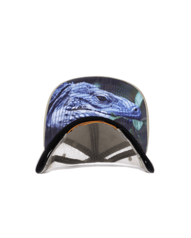 This hat comes in 3 different styles. High, medium and low profile. Both 5 panel and 6 panel, all 100% cotton. The design inspiration came from the environment in which the Blue Iguana calls home, a rocky, leafy and dry landscape, with lots of sun. Interesting fact: Blue Iguanas are only found in the Cayman Islands. This picture is of Peter (a very friendly Blue Iguana)